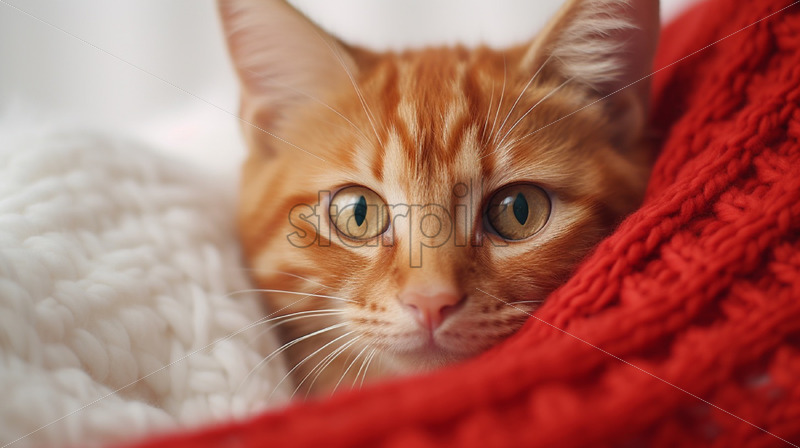 Orange cute kitten portrait close up