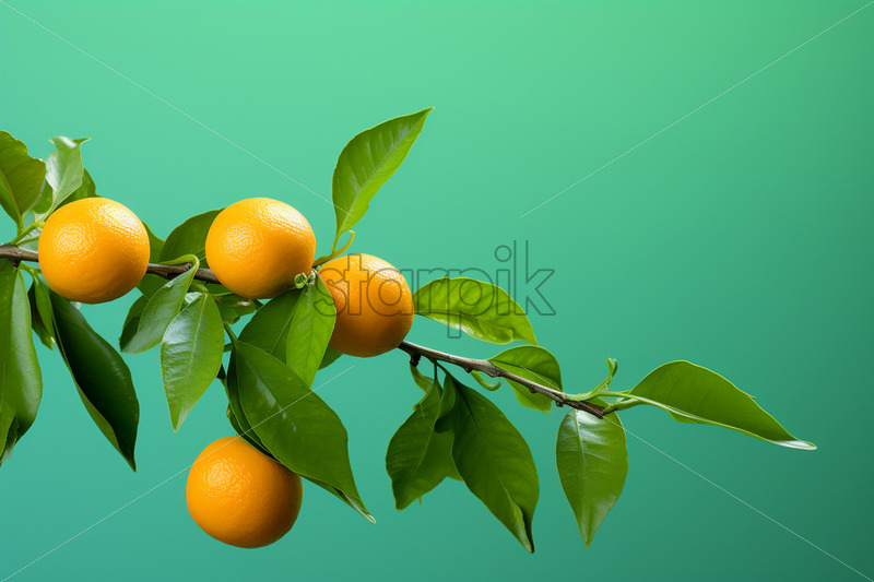 Oranges on a branch, pale green background