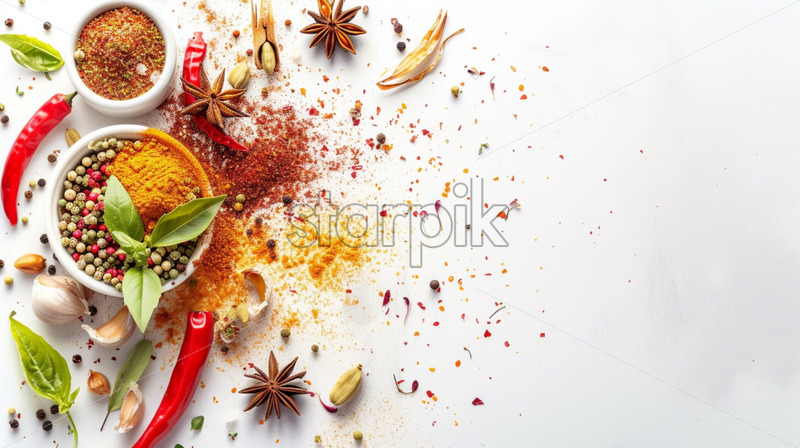 Oriental composition with spices dust on white background