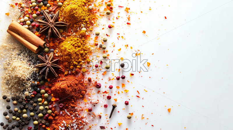 Home » Shop » Uncategorised » Oriental composition with spices dust on white background