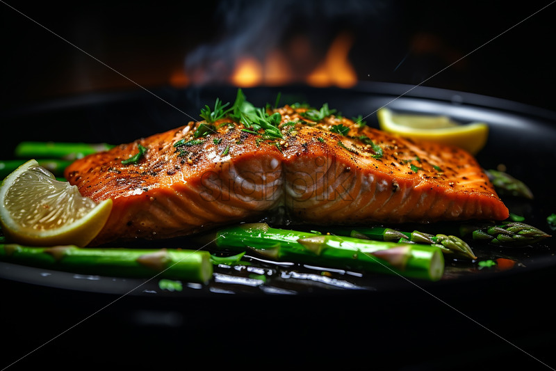 Oven-baked salmon with asparagus