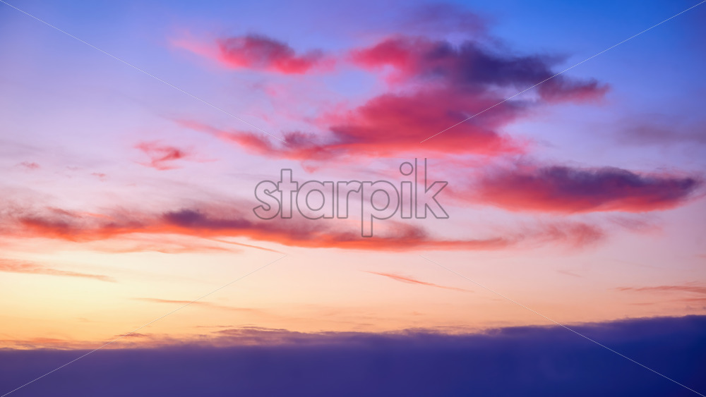 Pacific ocean and sky with blue – orange clouds at sunset in Los Angeles, USA