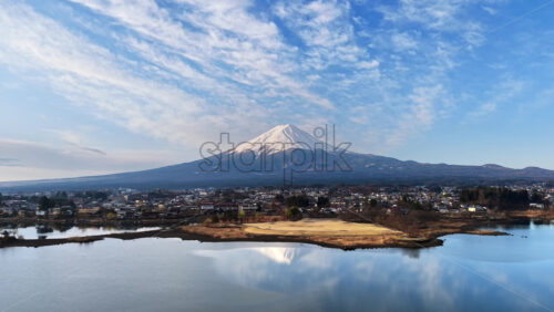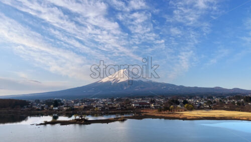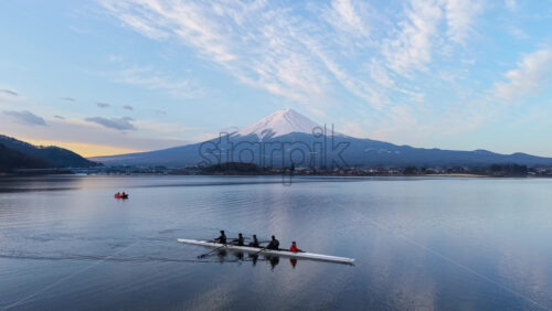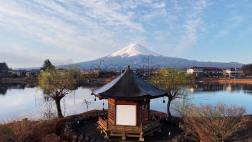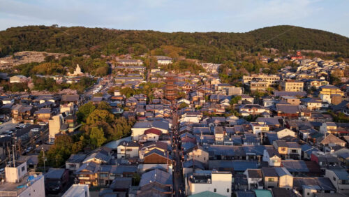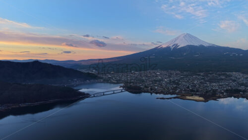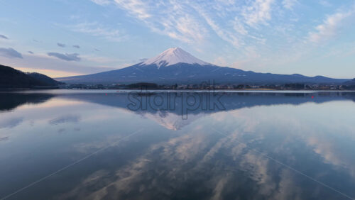 Video – Row of boats docked near autumn trees and city buildings, reflecting golden evening light on calm water