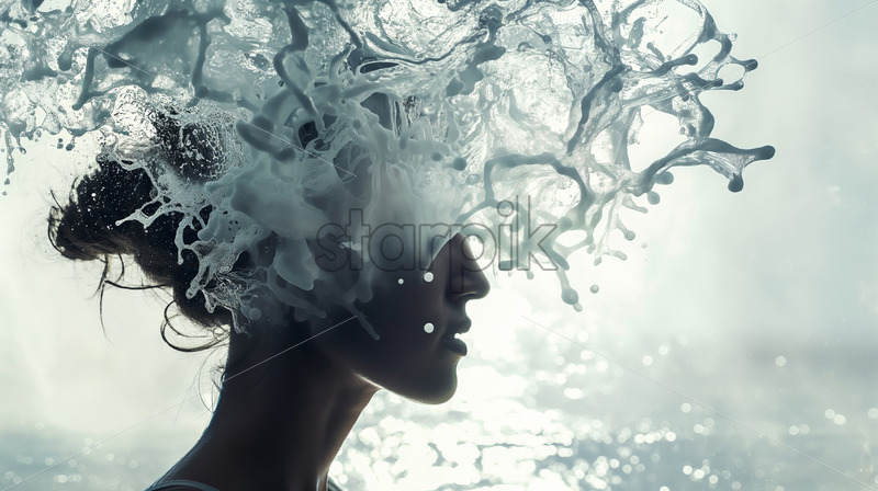 Paint explosion in a woman head profile