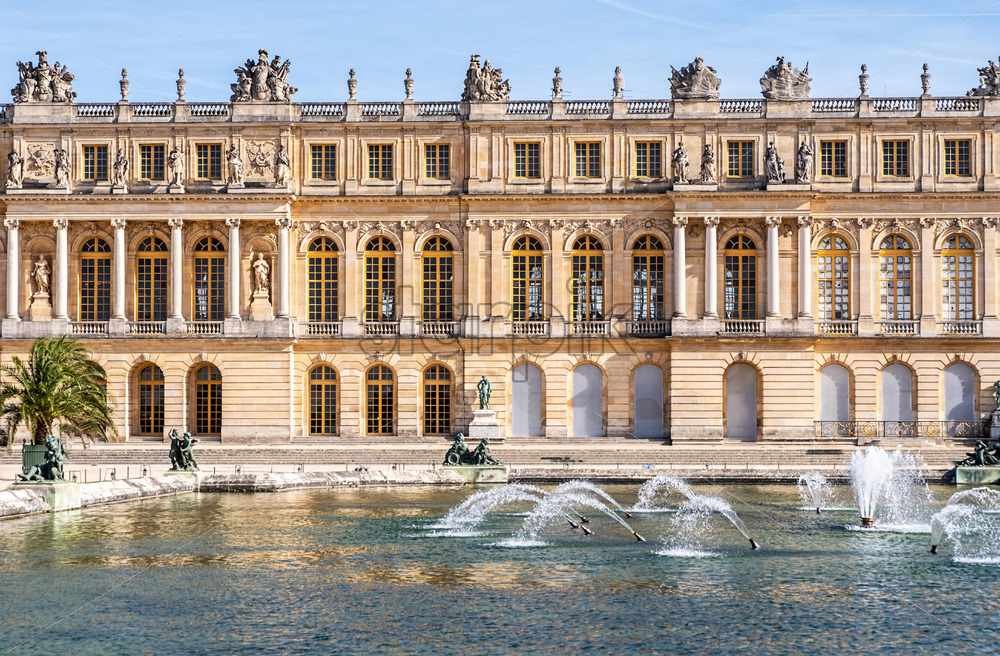 Palace de Versailles in mid autumn. Colourful building with a lot of warm colours. Narrow angle shot Royalty Free Stock photo