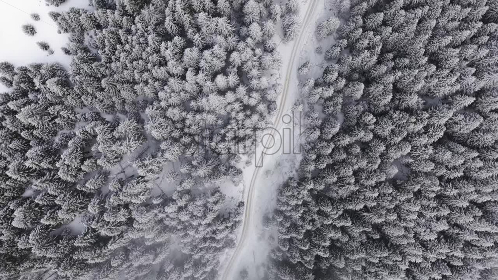 Panoramic aerial drone view of winter season with fir trees full of snow. Transylvania, Mount Ciucas in Romania