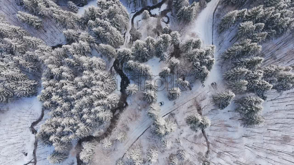Panoramic aerial drone view of winter season with fir trees full of snow. Transylvania, Mount Ciucas in Romania