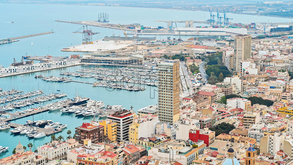 ALICANTE, SPAIN – MAY, 2023: View of boats at the port near shoreline