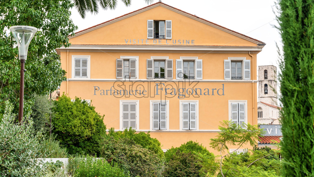 GRASSE, FRANCE – SEPTEMBER 3, 2021: Parfumerie Fragonard exterior, greenery