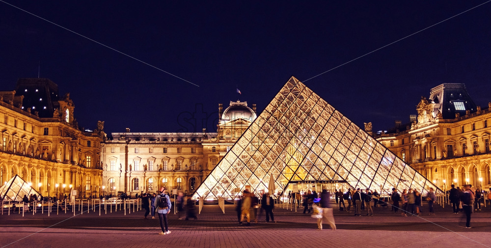 Home » Shop » photo » PARIS, FRANCE – 3 OCTOBER 2018: Louvre Museum at night with lights and people