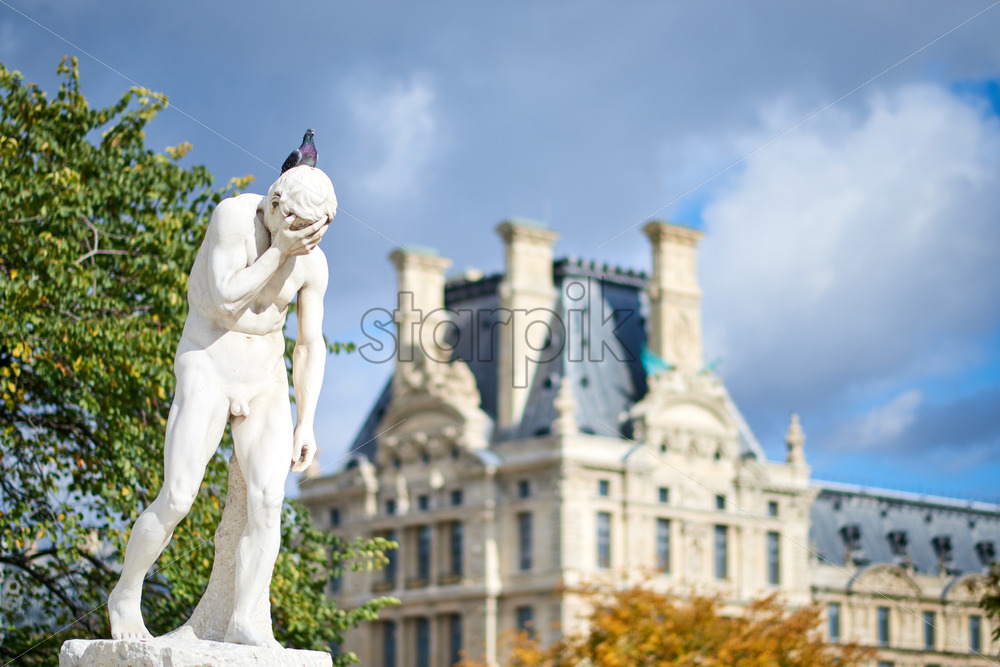 PARIS, FRANCE – OCTOBER 03, 2018: Cain after the murder of his brother. Sculpture by Henri Vidal also known as ”Facepalm” statue Royalty Free Stock photo