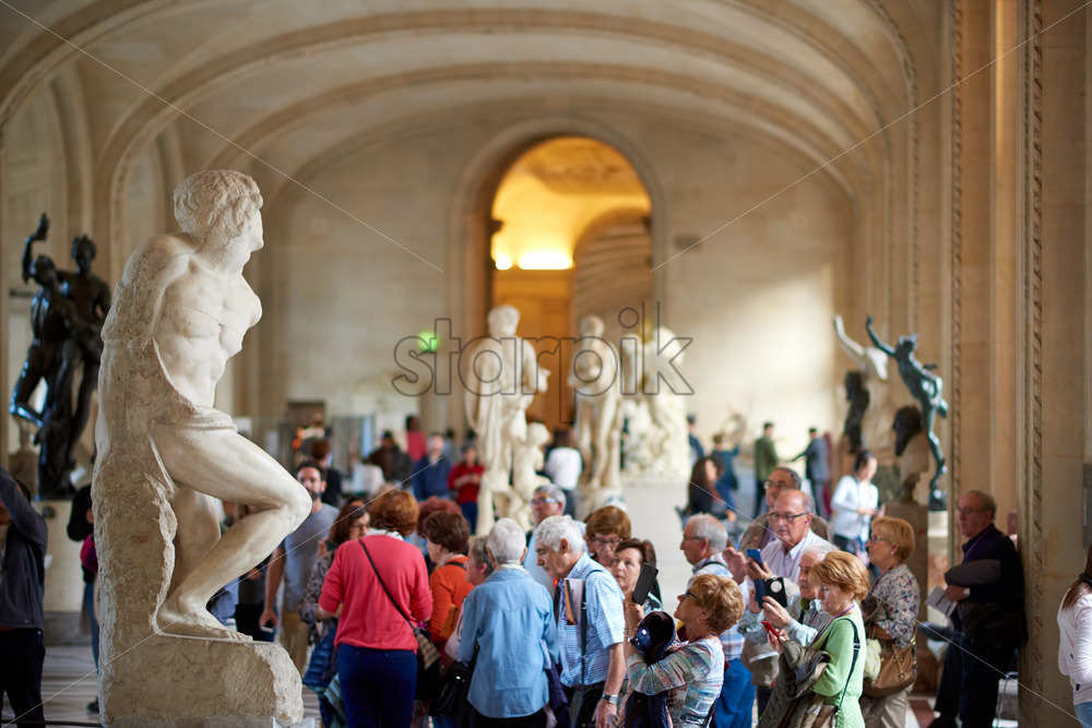 PARIS, FRANCE – OCTOBER 03, 2018: People taking photos of sculptures in Louvre Museum Royalty Free Stock photo