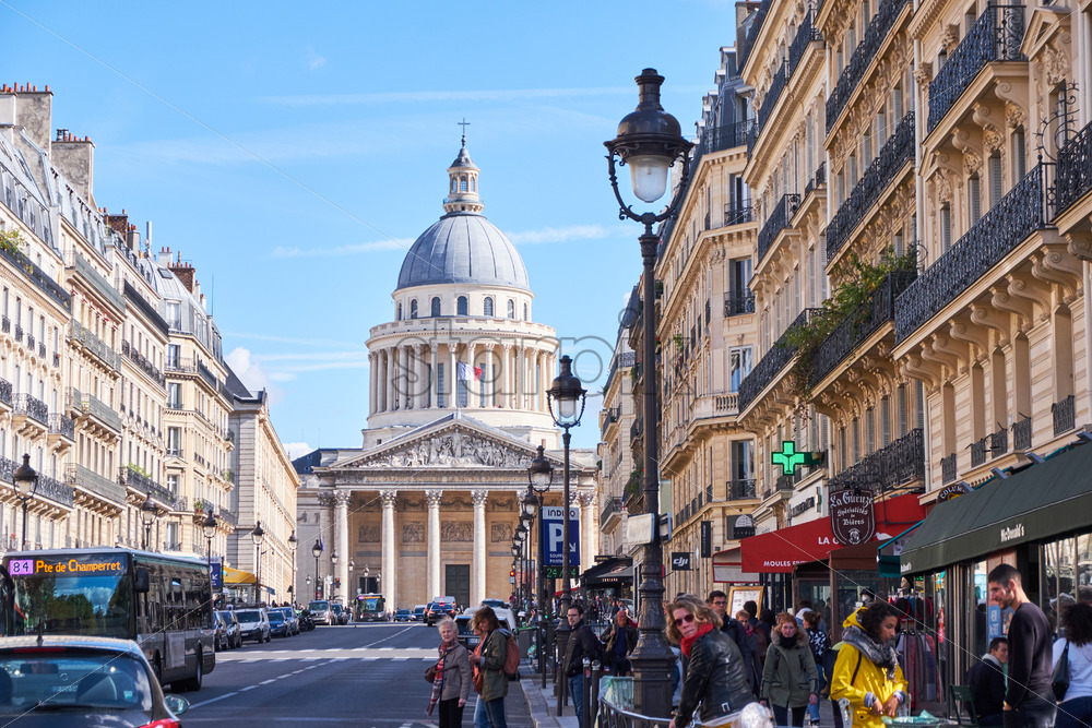 PARIS, FRANCE – SEPTEMBER 09, 2018: The Pantheon building at daylight. Cars and people on foreground Royalty Free Stock photo