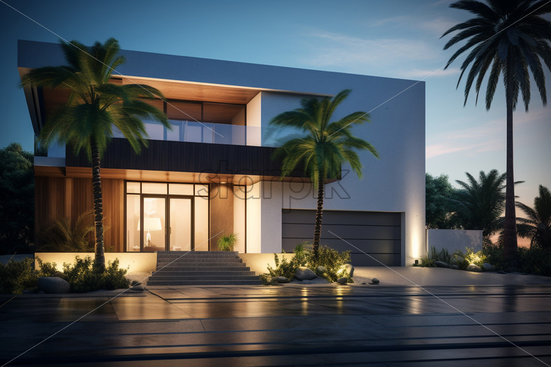 Home » Shop » Uncategorised » Part of a modern house with palm trees