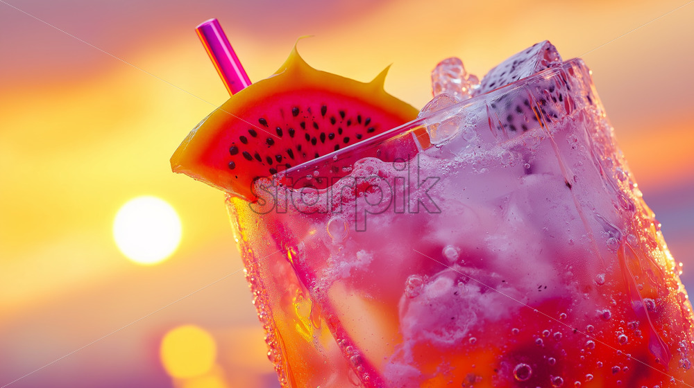 passion fruit mocktail vibrant colours at sunset