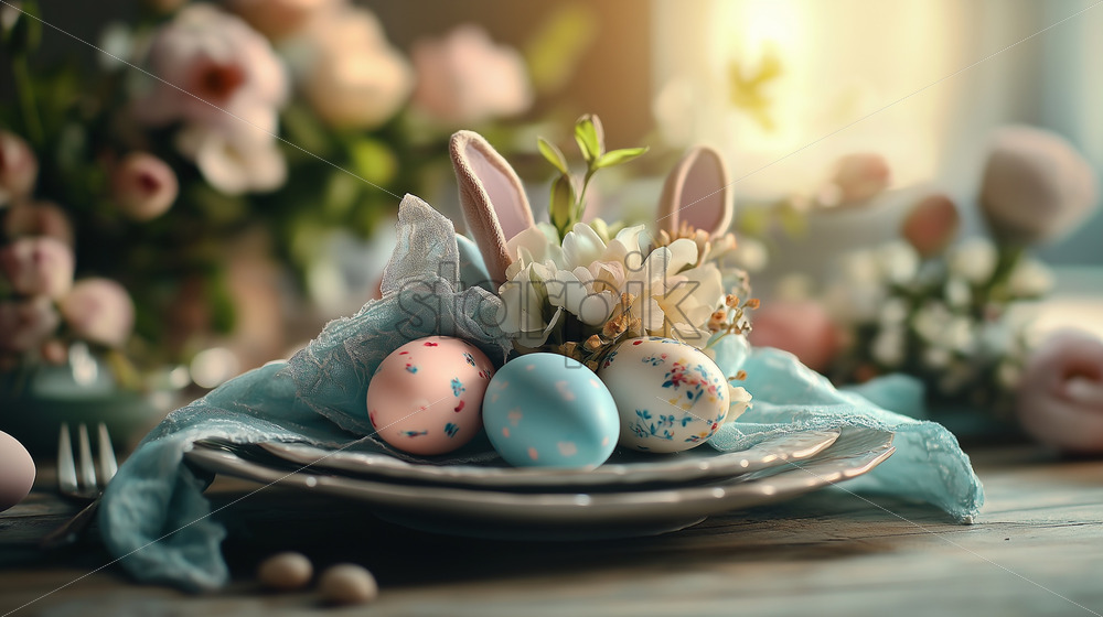 pastel themed Easter table setting