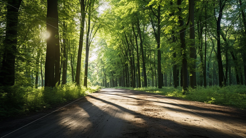 View of the forest on the Island of Sainte-Marguerite, alley, walking woman, greenery, France