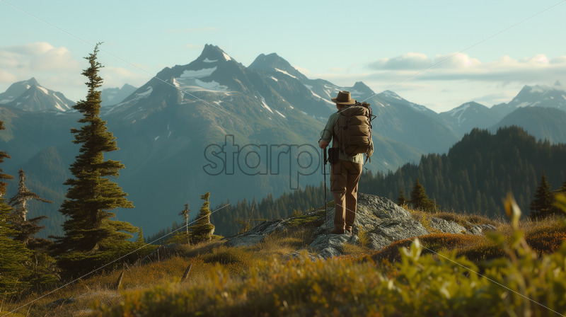 The forest ranger patrolling the vast mountain wilderness during early morning, commited to preserving the diverse ecosystems of mountainous terrain.