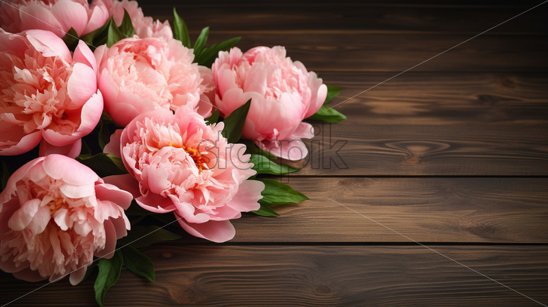 Peony flowers on a wooden surface