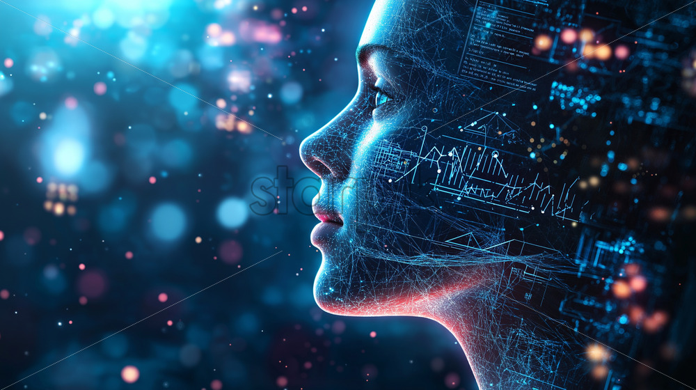 Home » Shop » AI Illustration » person immersed in quantum digital space in space, surrounded by holographic equations