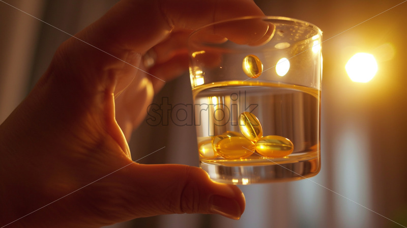 Person taking vitamins with water
