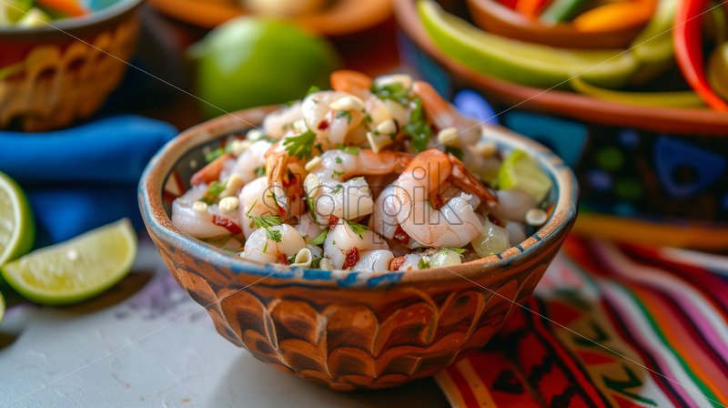 A mouthwatering photograph showcasing Peruvian Ceviche, a refreshing dish with marinated seafood and citrus flavors.