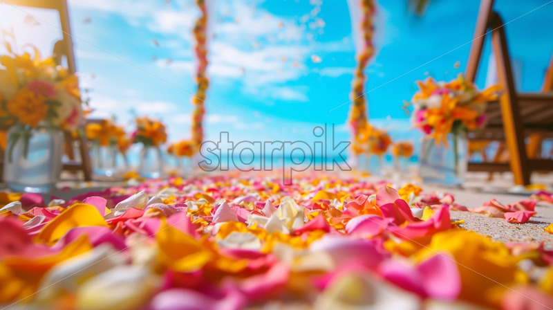 Home » Shop » Uncategorised » petals on an aisle for wedding ceremony, beach sea view on background