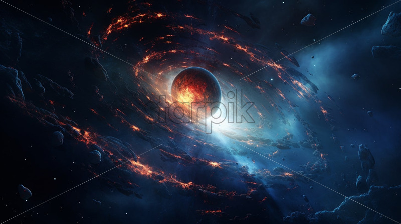An astronaut floating above Earth, surrounded by planets and galaxies