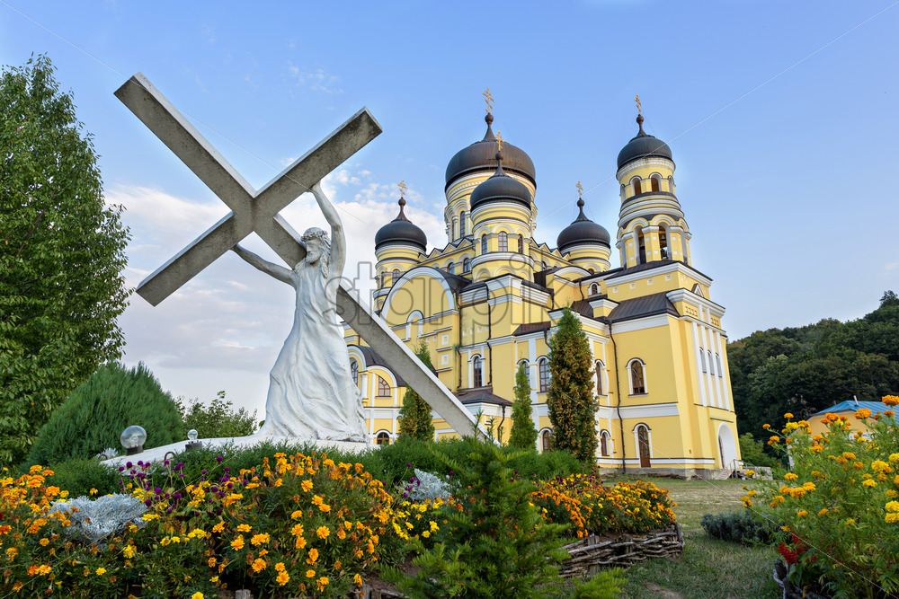 Close view to Curchi Monastery in Old Orhei, Moldova. Ortodox place in Europe with a beautiful architecture painted in a vibrant red colour Royalty Free Stock photo