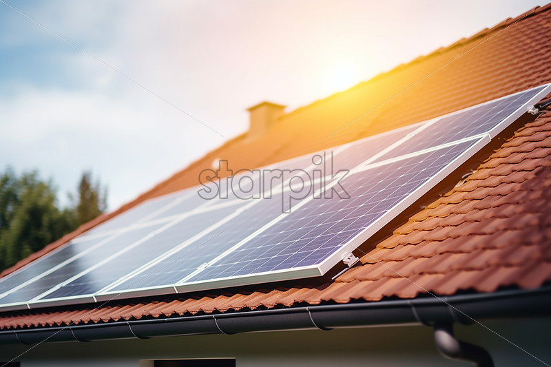 Home » Shop » AI Illustration » Photovoltaic panels on the tile roof of a house