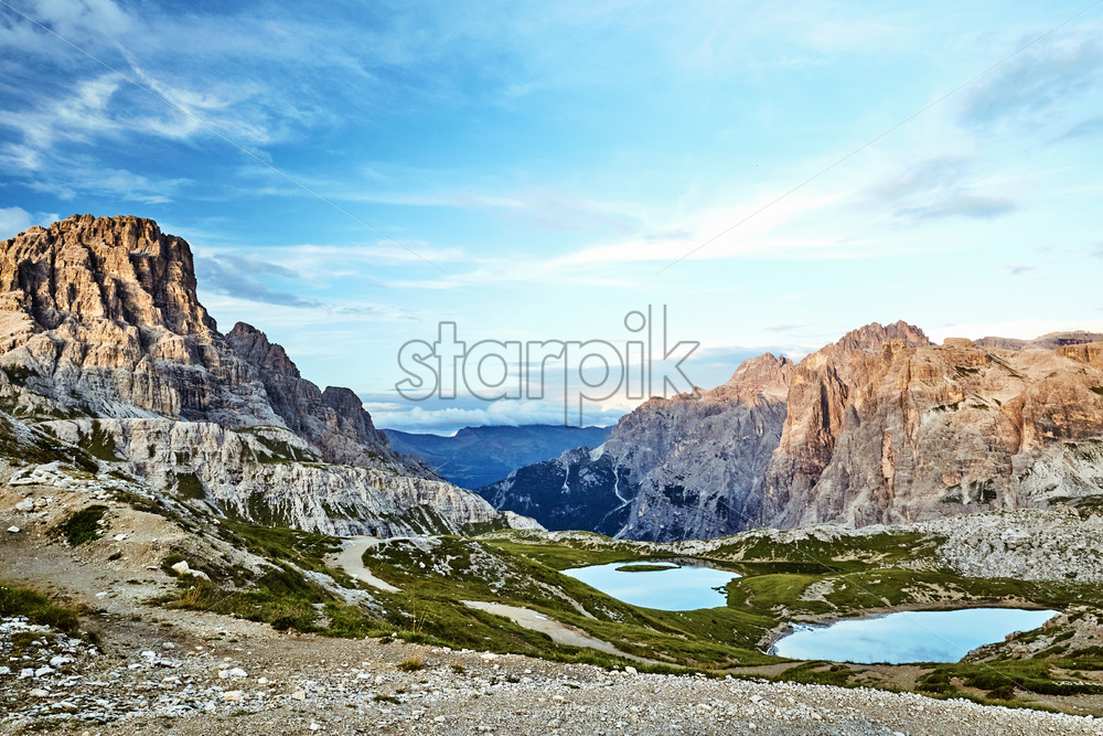 Home » Shop » photo » Piani Lake at daylight. Clouds on background Tre Cime di Lavaredo, Italy