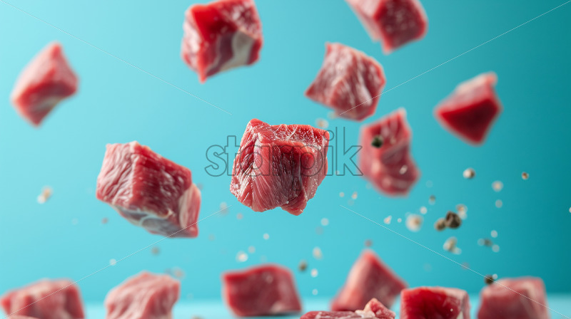 Close up of multiple pieces of Wagyu beef on a wooden tray at a street food market in Japan Royalty Free Stock Video Footage