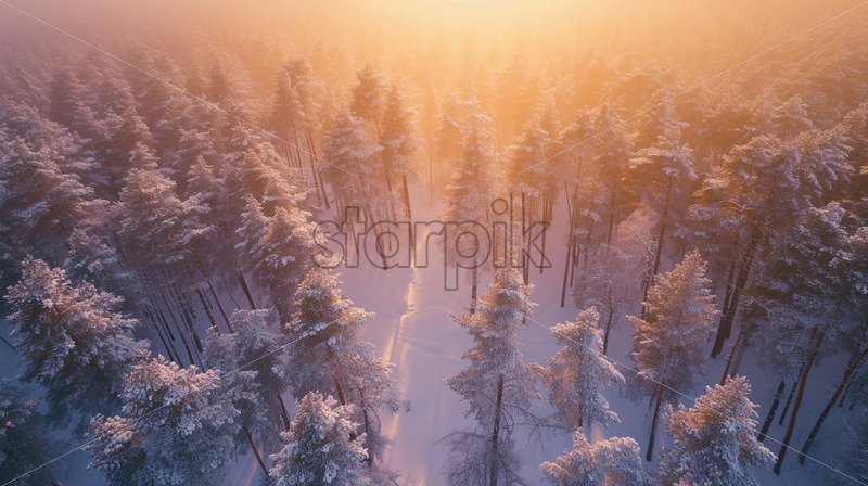 Wonderful winter forest pine trees top view