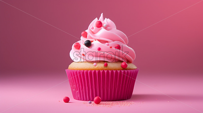 Valentine’s Day cupcake arrangement with pink frosting and heart-shaped sprinkles on a white isolate background