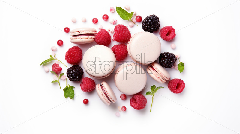 Pink macarons with forest fruit cream