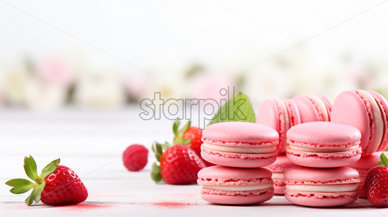 Home » Shop » Uncategorised » Pink macarons with strawberry cream, on isolated white background