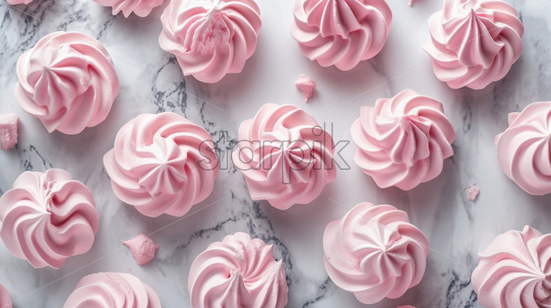 Pink meringue cookies on a gray marble table delicious desserts