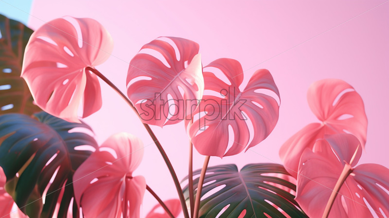 Pink monstera leaf background