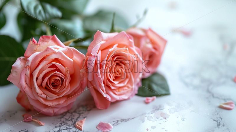 Close up photo of beautiful pink rose with drops of water in the rain.