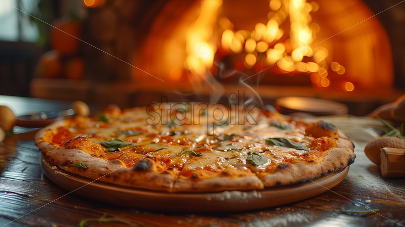 Home » Shop » AI Illustration » Pizza in a wood oven rustic delicious gourmet