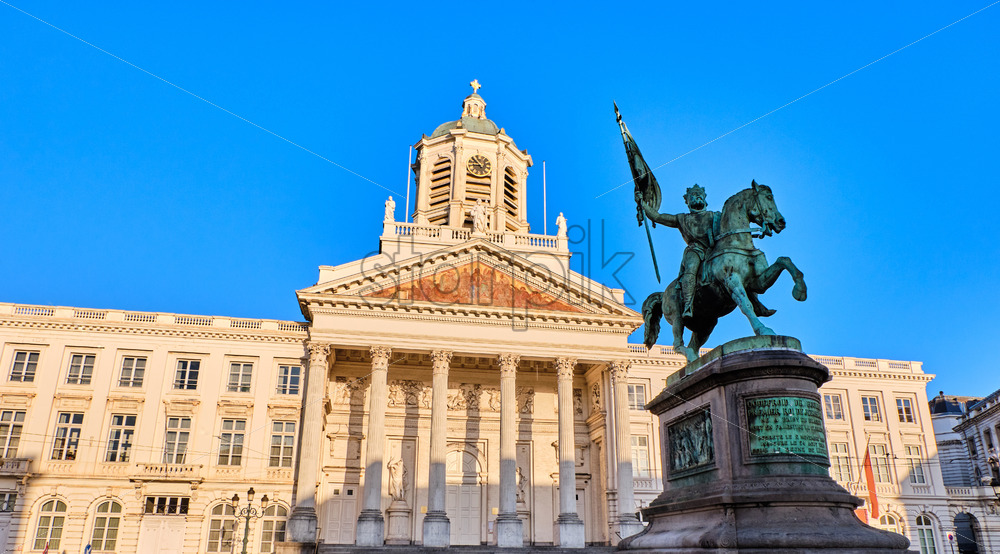 Daylight view from square to Saint Mark’s Basilica cathedral church with famous drawings. Bright blue clear sky. Negative copy space, place for text. Venice, Italy