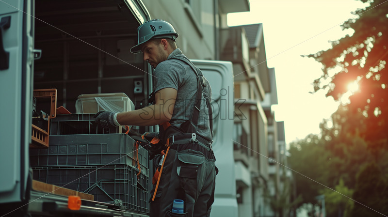 Home » Shop » Uncategorised » Plumber unloading equipment near residential area