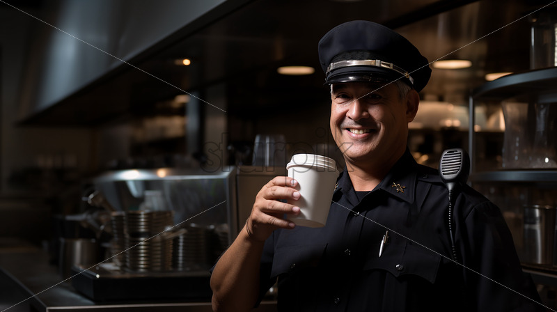 A barista meticulously preparing coffee amidst a cozy café ambiance with rustic mugs.