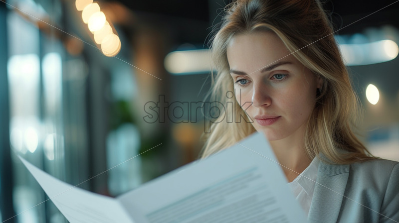 Portrait of a businesswoman reviewing documents in a modern office setting