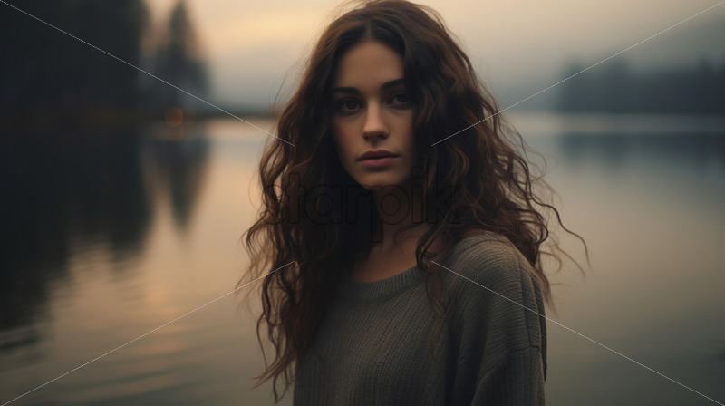 Caucasian woman posing with view of Barcelona on the background, Spain