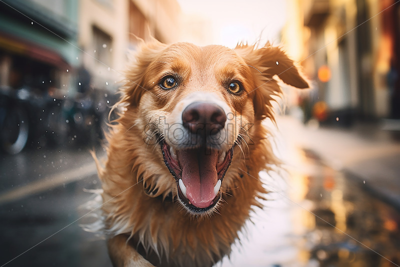 Close view of a woman petting her happy german spaniel with brown fur and opened mouth, nature