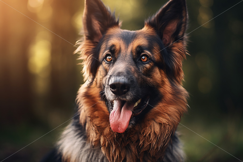 Close view of a woman petting her happy german spaniel with brown fur and opened mouth, nature