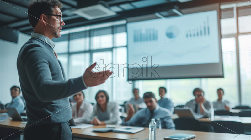 Portrait of a man giving a presentation with a projector in a meeting