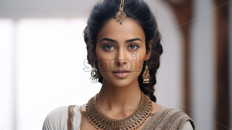 Portrait of a South Asian woman on a white background