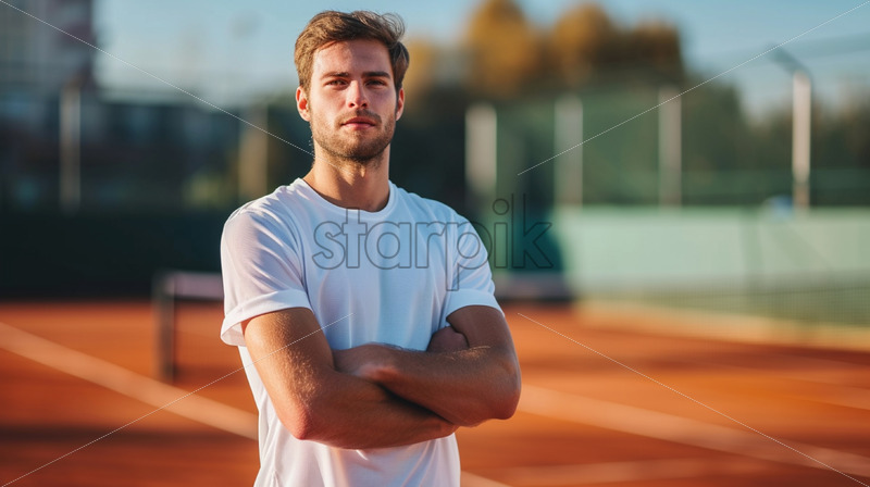 Portrait of a tennis player against the background of a tennis court